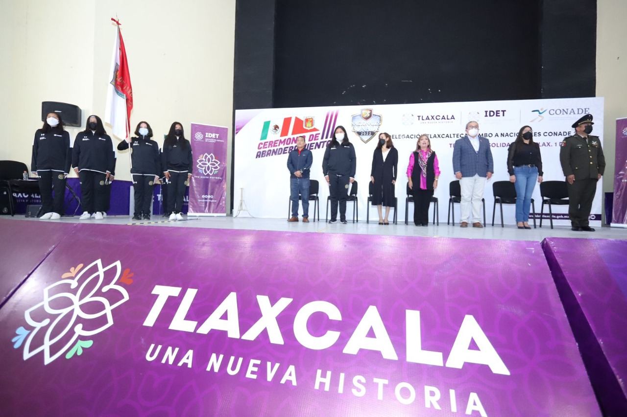 Este día, la gobernadora Lorena Cuéllar Cisneros abanderó a la delegación tlaxcalteca que participará en los Juegos Nacionales de la Comisión Nacional de Cultura Física y Deporte (Conade) 2022, a realizarse del 2 de junio al 23 de julio en Baja California, Sonora, Baja California Sur y Sinaloa.