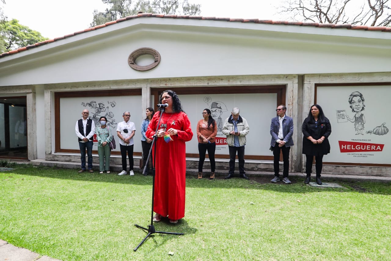 Durante la inauguración, que se llevó a cabo en la Cabaña 1 del Complejo Cultural Los Pinos, la secretaria de Cultura del Gobierno de México, Alejandra Frausto Guerrero, estuvo acompañada de Alma E. Muñoz, viuda de Antonio Helguera, el monero y curador de la exposición, Rafael Barajas Durán, El Fisgón, y el director general del Complejo Cultural Los Pinos, Homero Fernández Pedroza.