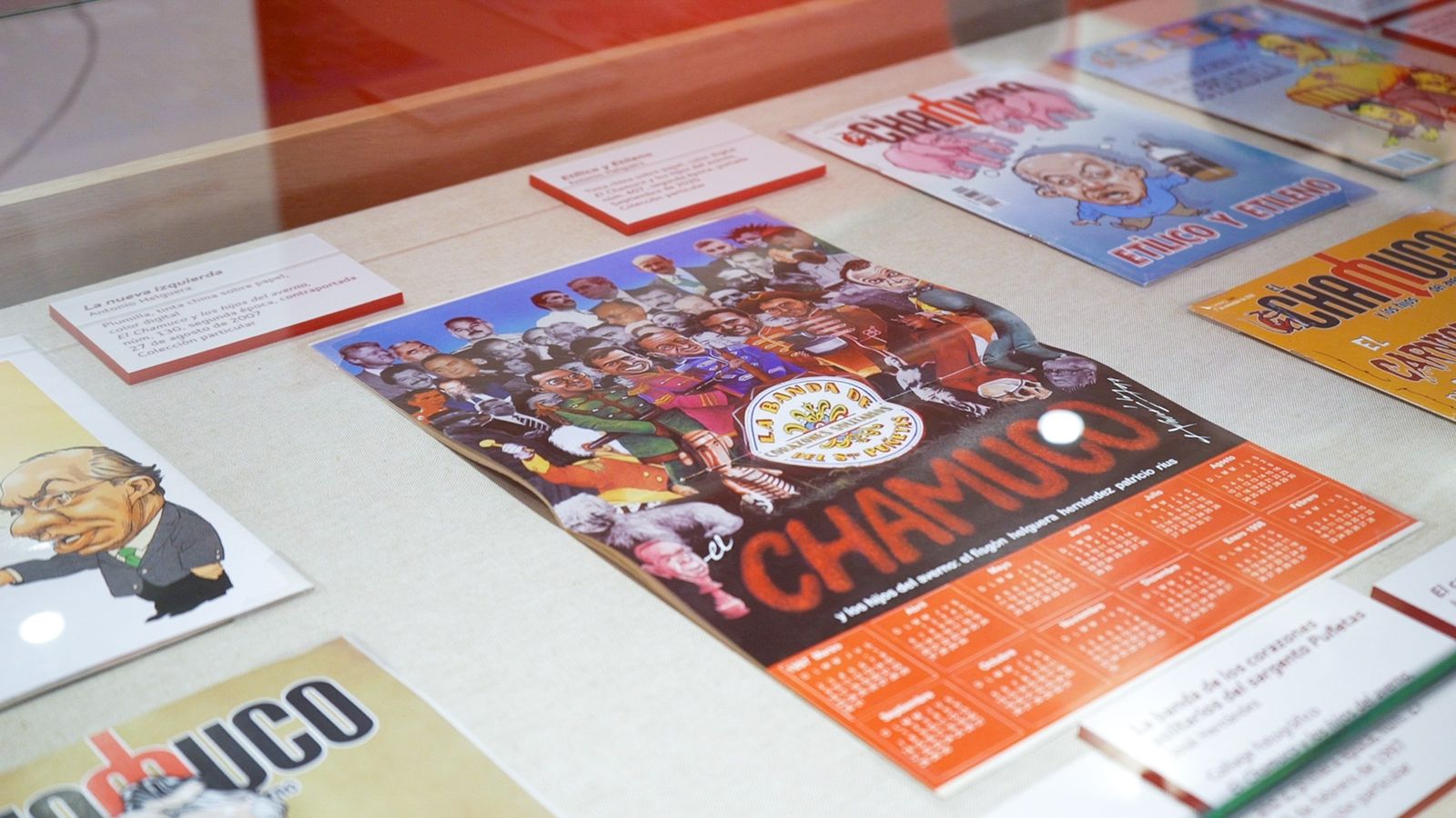 La exposición «Travesuras de Helguera: Un Crítico de Los Pinos en Los Pinos» consta de 295 piezas de la colección particular de la familia Helguera Muñoz, curadas por Rafael Barajas «El Fisgón», de la mano de la viuda de Helguera, Alma E. Muñoz, y estará expuesta hasta el 23 de octubre en la Cabaña 1 del Complejo Cultural Los Pinos.