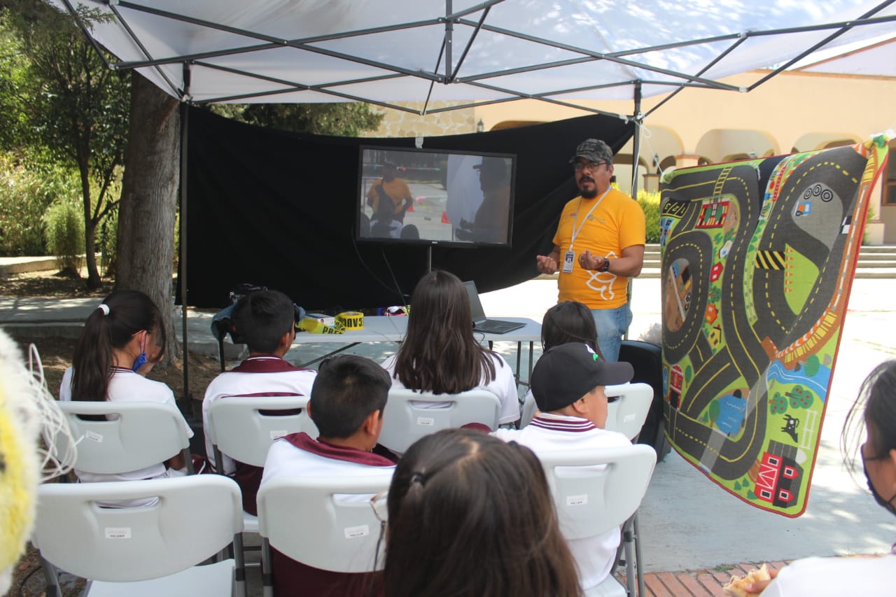 El personal del Sector Salud ofreció una plática informativa de prevención vial, en la que los niños resolvieron sus dudas y participaron en un ejemplo de manejo con Go Karts, en un circuito en la explanada principal del IDET.