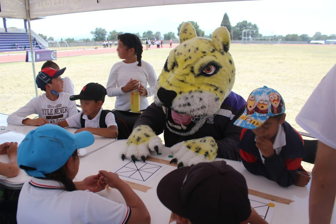 Durante las actividades, también convivieron con la mascota del Colegio de Bachilleres de Tlaxcala (Cobat), con quien se tomaron fotos y jugaron en cada una de las estaciones deportivas.
