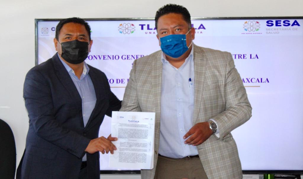 Los directores de Atención Primaria a la Salud de la Secretaría de Salud (SESA) y del Colegio de Bachilleres del Estado de Tlaxcala (Cobat), Hugo Celis Galicia y Darwin Pérez y Pérez, respectivamente, firmaron un Convenio General de Colaboración que permitirá llevar diversos servicios preventivos de salud para que 15 mil jóvenes de los 24 planteles de este subsistema de nivel medio superior cuenten con una vida saludable.