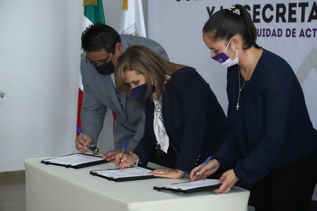 También estuvieron presentes en la firma de convenio, el secretario de Gobierno, Sergio González Hernández y el oficial Mayor de Gobierno, Ramiro Vivanco Chedraui.