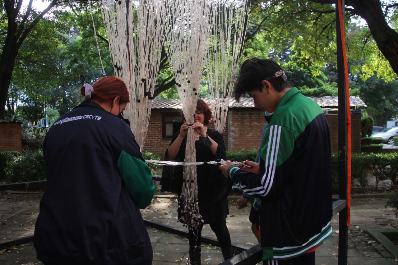 Alumnos del CECyTE construyen instalación monumental para el cervantino