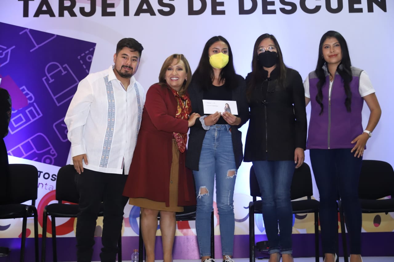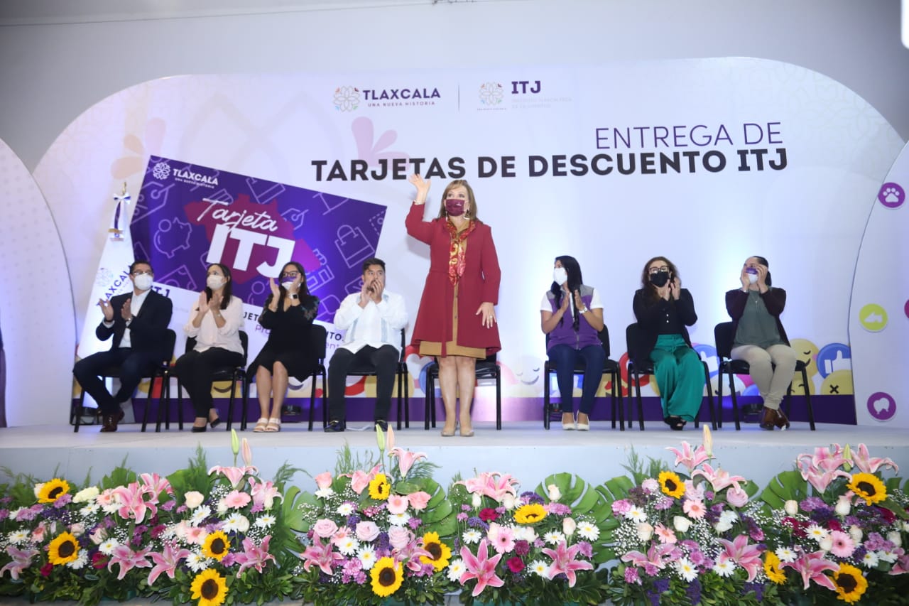 La gobernadora Lorena Cuéllar Cisneros entregó mil 300 tarjetas de descuento del Instituto Tlaxcalteca de la Juventud (ITJ) a igual número de personas de entre 16 y 30 años de edad, para que accedan a promociones de productos y servicios en más de 200 comercios afiliados.