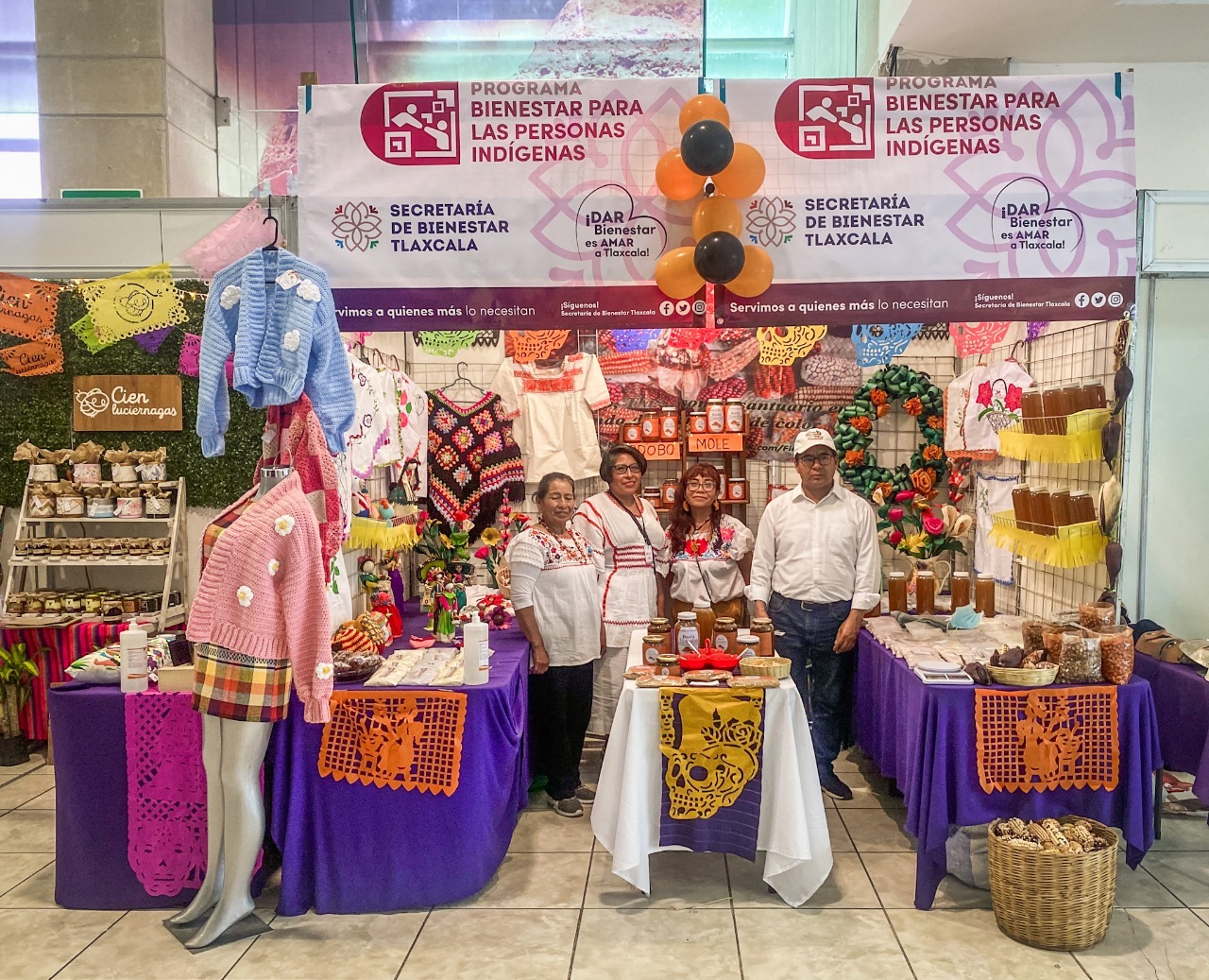 De esta manera, los visitantes pueden encontrar dentro del Pabellón Artesanal, ubicado en el Centro de Convenciones, los proyectos “Mixcoame Tlacxoma”, bordados en pepenado; artesanías de totomoxtle; dulces tradicionales y pan artesanal; artesanías de La Magdalena a partir de madera, caritas, chirimías, teponaxtle; elaboración y comercialización de tortillas de comal, polvo de haba, frijol y maíz; harina de maíz nativo agroecológico, de colores y sabores naturales; mole artesanal y mermeladas; sarape artesanal y elaboración de mazapan artesanal, para adquirirlos y con ello ayudar a las familias indígenas en situación de vulnerabilidad.