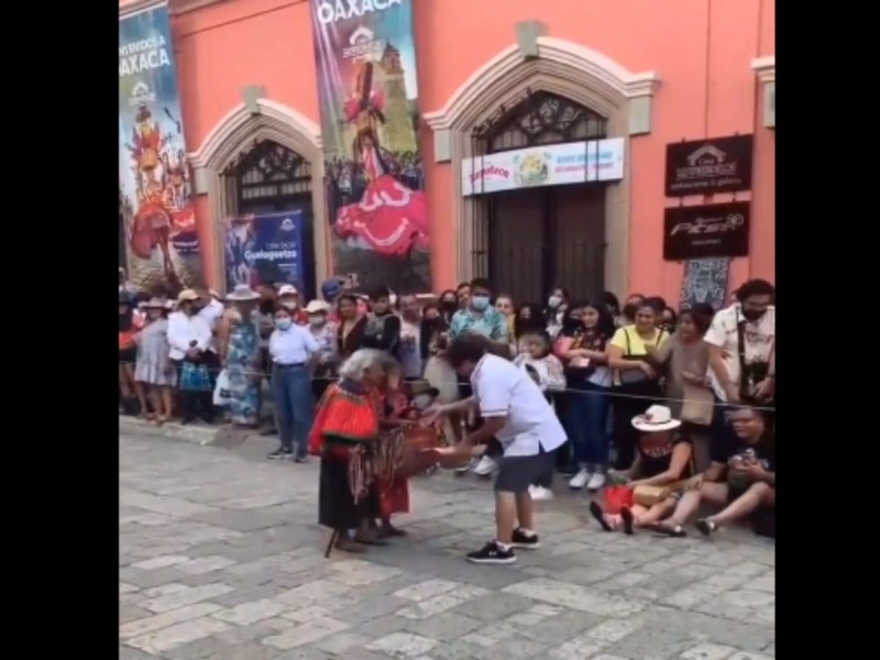 Esto pasó ayer en Oaxaca, mientras esperaban el desfile de la Guelaguetza, 2 dos señoras de la 3ra edad, que venden artesanías, los asistentes hicieron una «coperacha» para ellas.