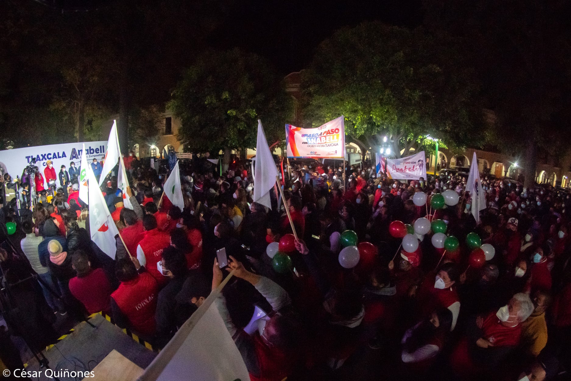 En el primer minuto de este domingo, Anabell Ávalos Zempoalteca arrancó su campaña por la gubernatura de Tlaxcala en el zócalo de la capital del estado, ante cientos de simpatizantes que ondearon banderas de la coalición “Unidos por Tlaxcala”.