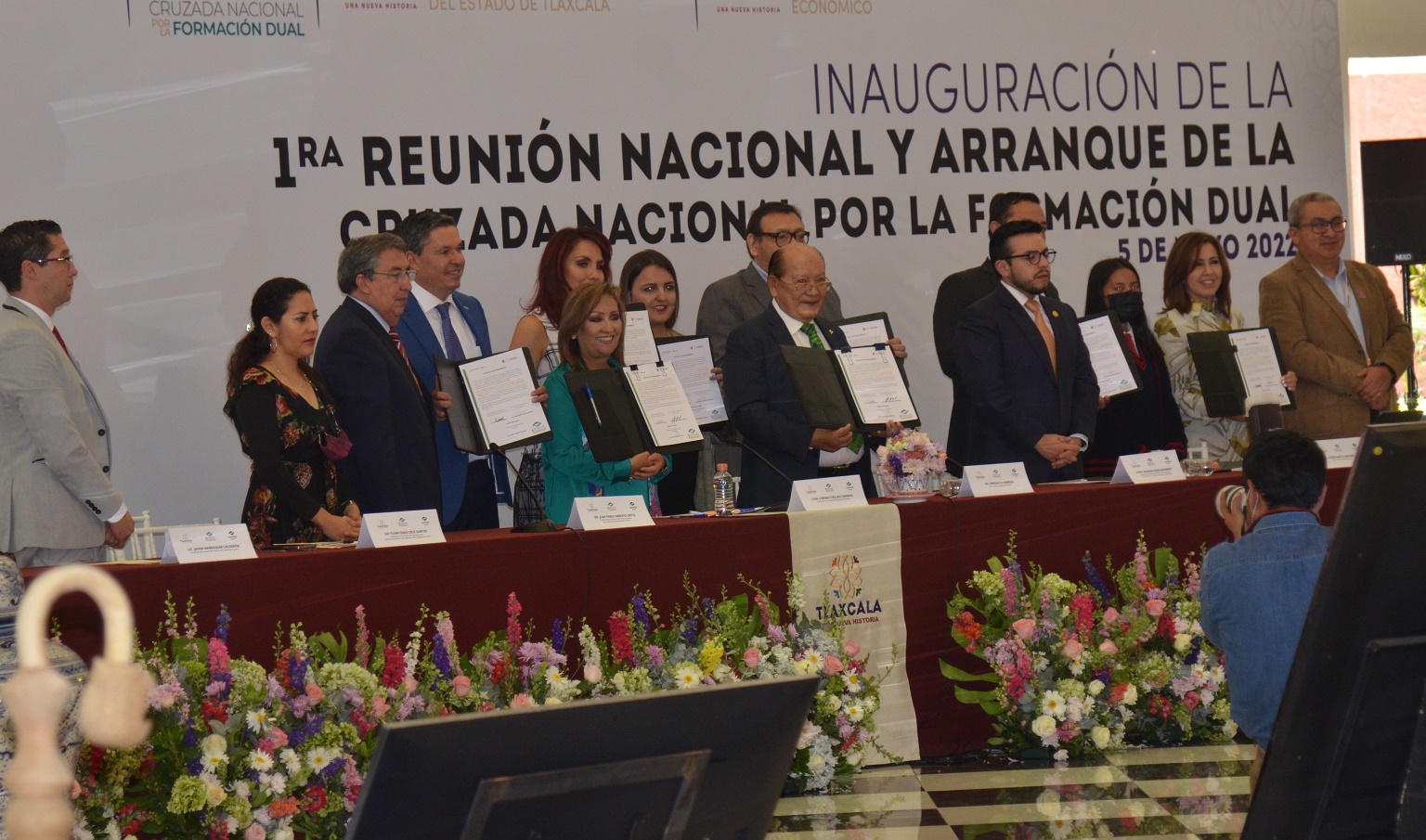 Acompañada de funcionarios federales y estatales de educación, así como de representantes del empresariado, la gobernadora Lorena Cuéllar dio banderazo este martes en el centro de convenciones “Joaquín Cisneros Molina” de Tlaxcala capital a la Cruzada Nacional por la Formación Dual y la primera reunión del año de los directores generales del Conalep.