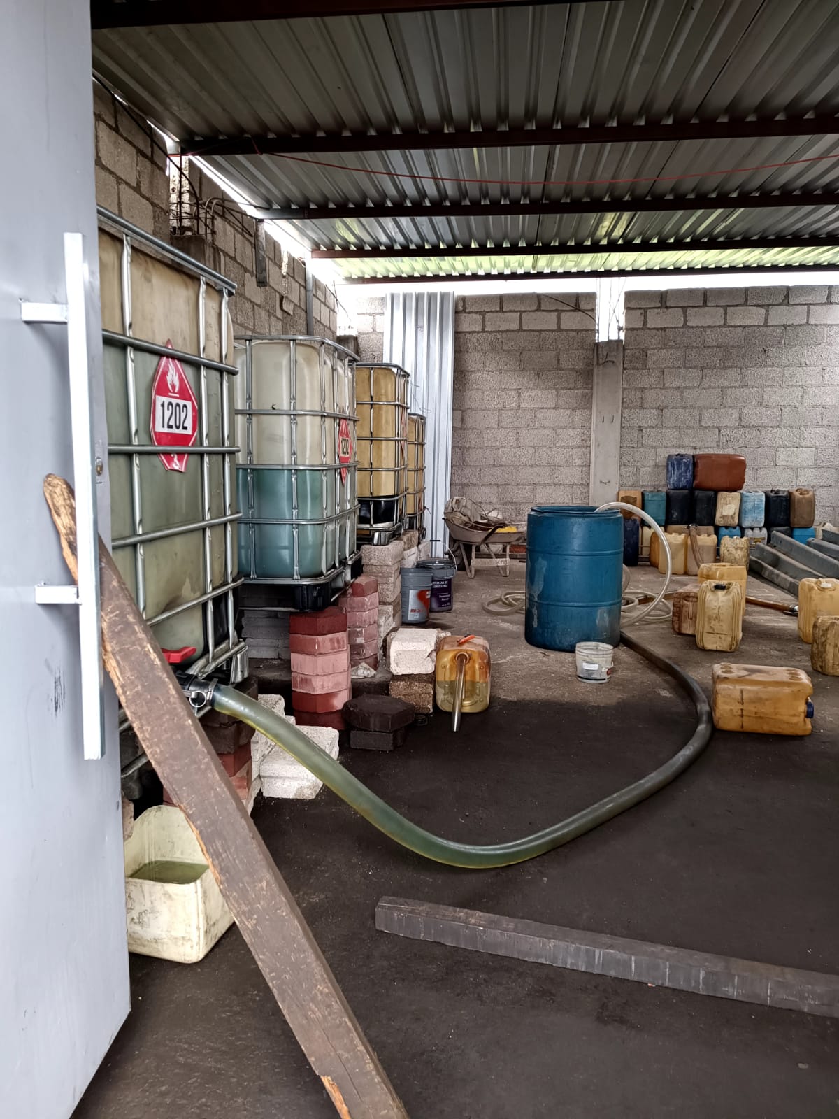 En el lugar se aseguraron cuatro tanques con capacidad de mil litros, cinco bidones de 20 litros, un tambo de 30 litros, un bote de 19 litros, 13 mangueras de diferentes calibres, así como un inmueble. El total de hidrocarburo asegurado sumó mil 530 litros aproximadamente.