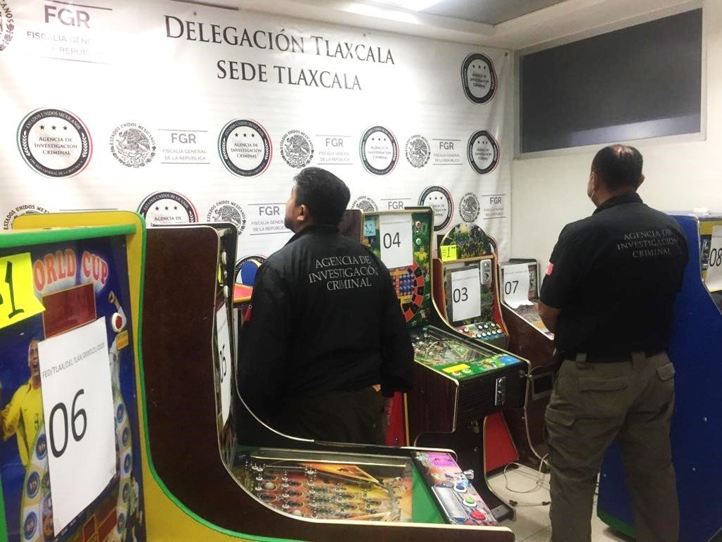 Derivado de las investigaciones ministeriales llevadas a cabo en el municipio de San Cosme Xaloztoc, Nanacamilpa y Tetla de la Solidaridad, la PFM aseguró 22 máquinas tragamonedas.