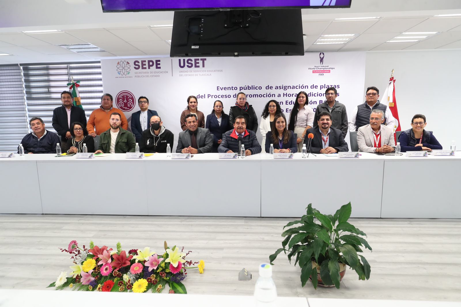 La Secretaría de Educación Pública del Estado y la Unidad de Servicios Educativos de Tlaxcala (SEPE–USET), a través de la Dirección del Sistema Estatal para la Carrera de las Maestras y los Maestros (Disecamm), llevó a cabo la asignación de 88 Horas Adicionales en Educación Básica correspondiente al “Ciclo Escolar 2023–2024”, a 18 docentes de secundarias técnicas y generales.