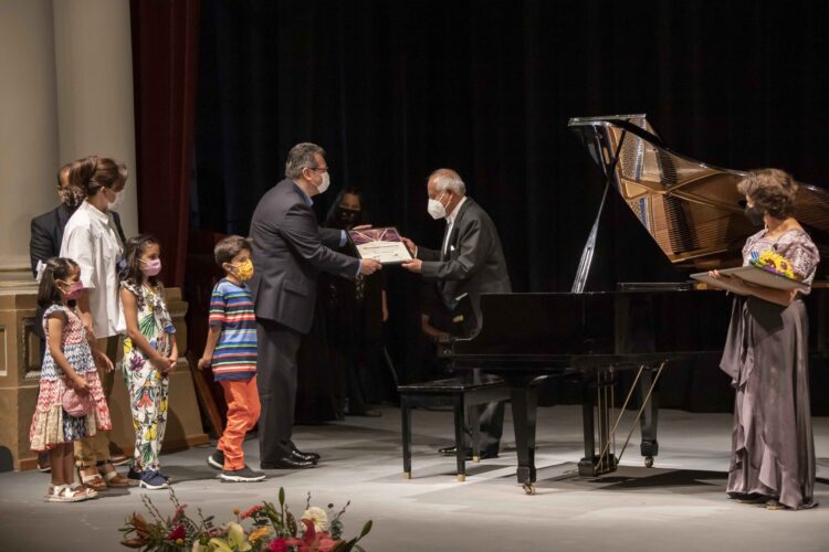 El Gobernador Marco Mena y la Presidenta Honorífica del Sistema Estatal DIF, Sandra Chávez Ruelas, asistieron al concierto de reapertura del Teatro Xicohténcatl, en reconocimiento a la trayectoria del pianista y compositor tlaxcalteca Roberto Pérez Ortiz.