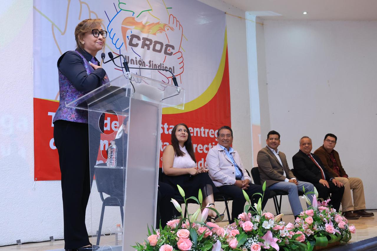 En tanto, el secretario general, Justino Hernández Xolocotzi, reconoció el trabajo de la gobernadora para el desarrollo económico al permitir la autonomía de los sindicatos en apego a las reformas en materia laboral que promovió el gobierno federal de Andrés Manuel López Obrador.