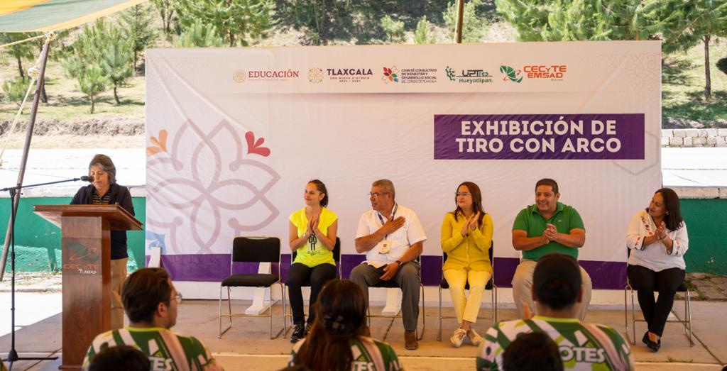 Con la finalidad de alentar a las y los estudiantes a explorar la disciplina de Tiro con Arco y descubrir los beneficios que puede aportarles, la presidenta honorífica del Comité Consultivo de Bienestar y Desarrollo Social del Estado, Fernanda Espinosa de los Monteros Cuéllar atestiguó la demostración que el equipo de la Universidad Politécnica de Tlaxcala, Región Poniente (Uptrep), hizo a estudiantes del Colegio de Estudios Científicos y Tecnológicos del Estado (Cecyte).