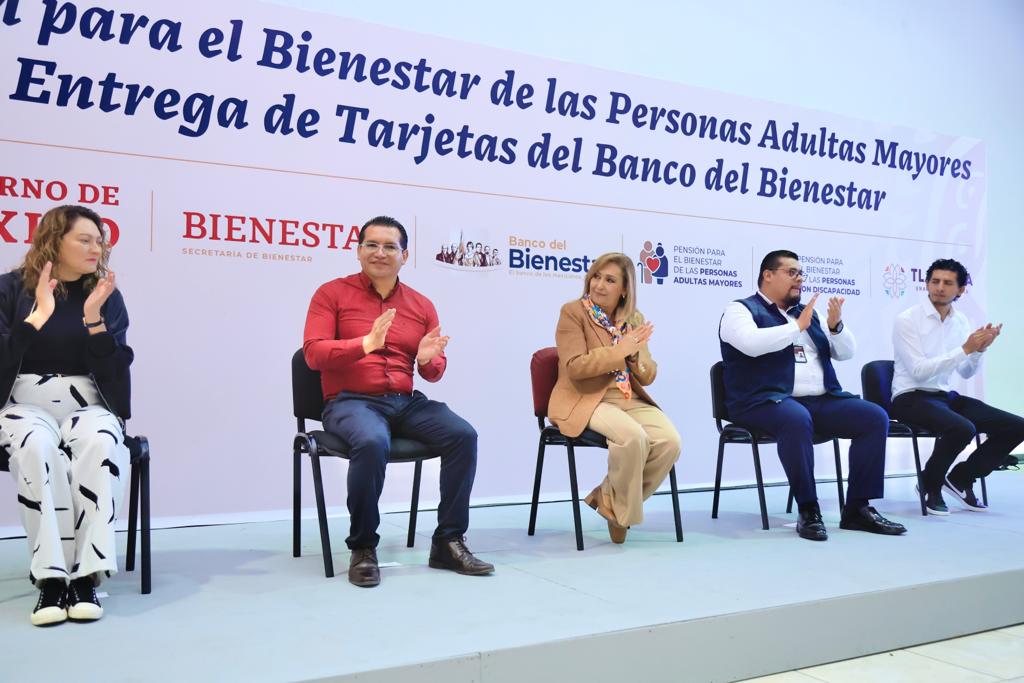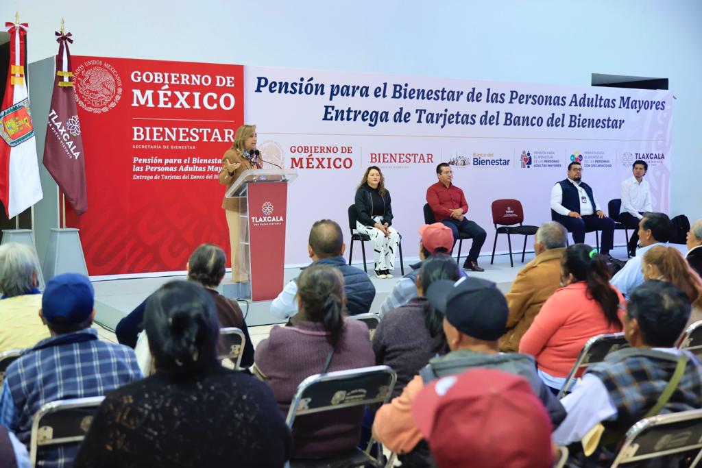 La gobernadora Lorena Cuéllar Cisneros atestiguó la entrega de 2 mil tarjetas de nueva incorporación de la Pensión para el Bienestar de las Personas Adultas Mayores (PAM), a beneficiarios de los municipios de Tlaxcala, Contla y Chiautempan.