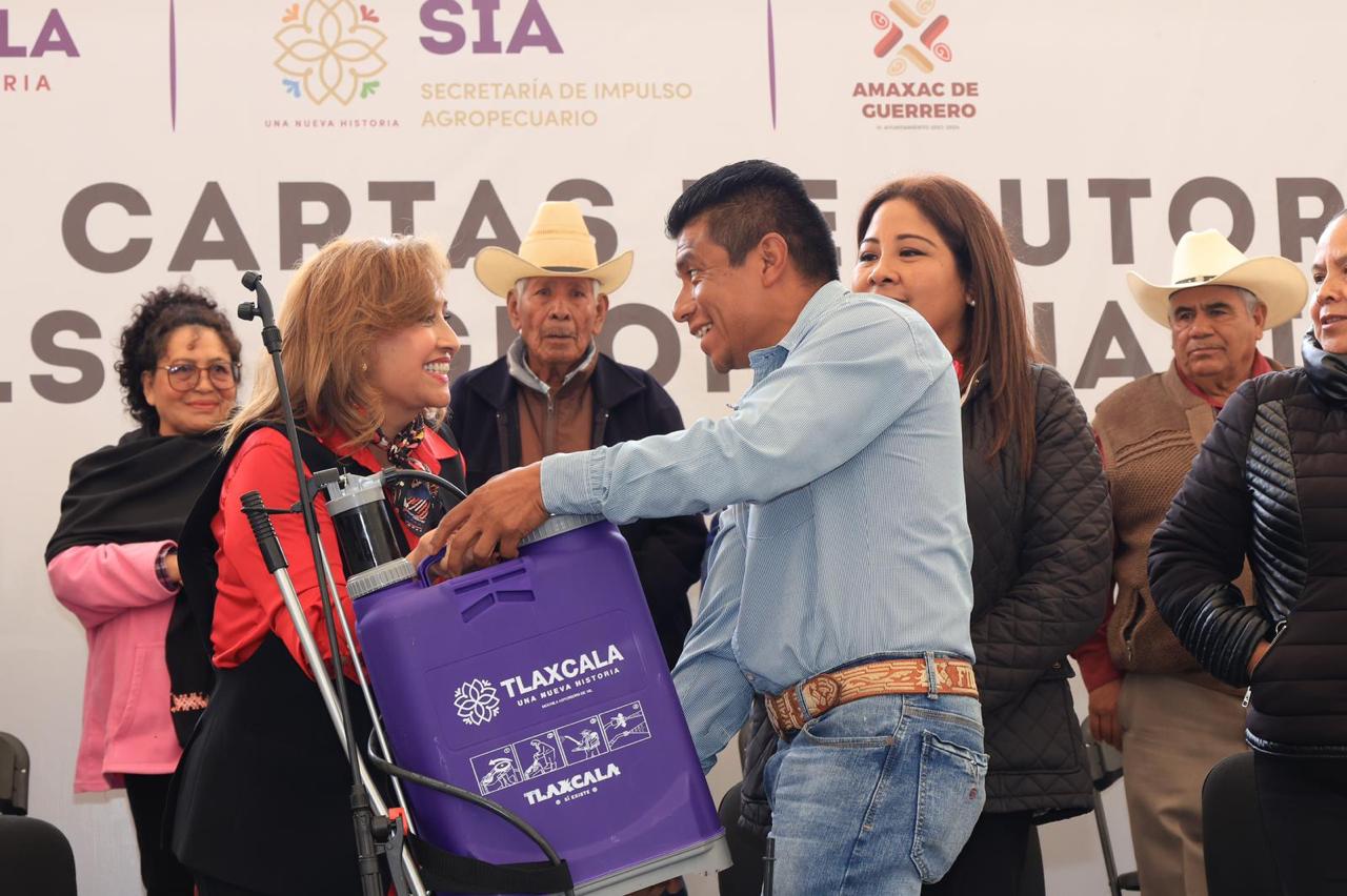 Ante cientos de beneficiarios concentrados en el municipio de Amaxac de Guerrero, la mandataria estatal sostuvo que, desde su gobierno, se han proporcionado apoyos de maquinaria, equipo, infraestructura, material vegetativo, insumos y pie de cría, con el fin contribuir al crecimiento sustentable del sector y al desarrollo de la economía de los pequeños productores rurales.