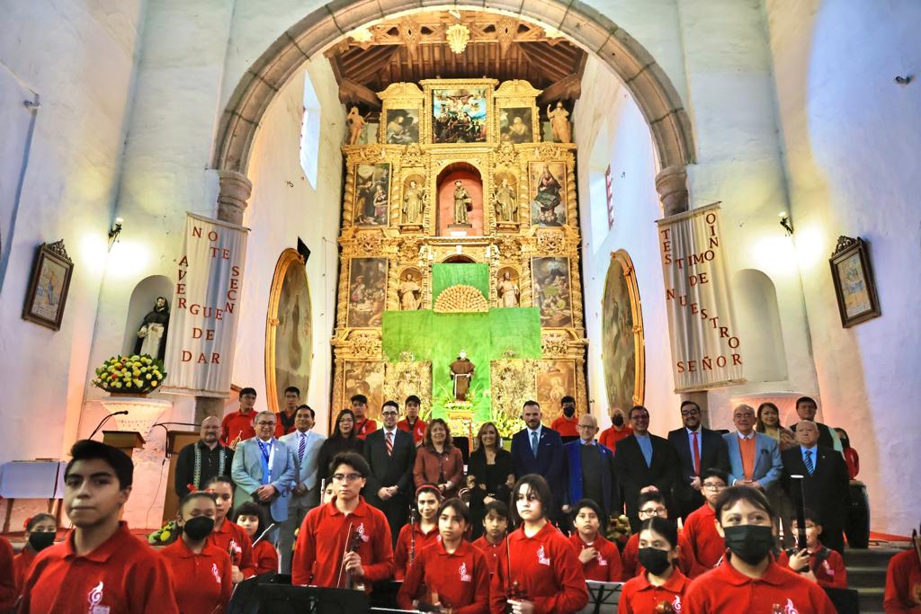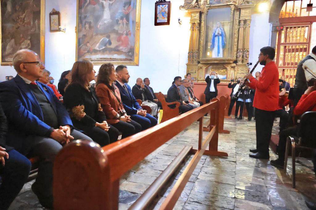 La gobernadora Lorena Cuéllar Cisneros, el representante de la Organización de las Naciones Unidas para la Educación, la Ciencia y la Cultura (Unesco) en México, Frédéric Vacheron; y los directores generales de los Institutos Nacionales de Antropología e Historia (INAH), Diego Prieto Hernández y de Bellas Artes (Inbal), Lucina Jiménez, presenciaron un concierto en el histórico Ex Convento de San Francisco, el cual estuvo a cargo de la Orquesta Sinfónica Infantil del municipio de Tlaxcala.