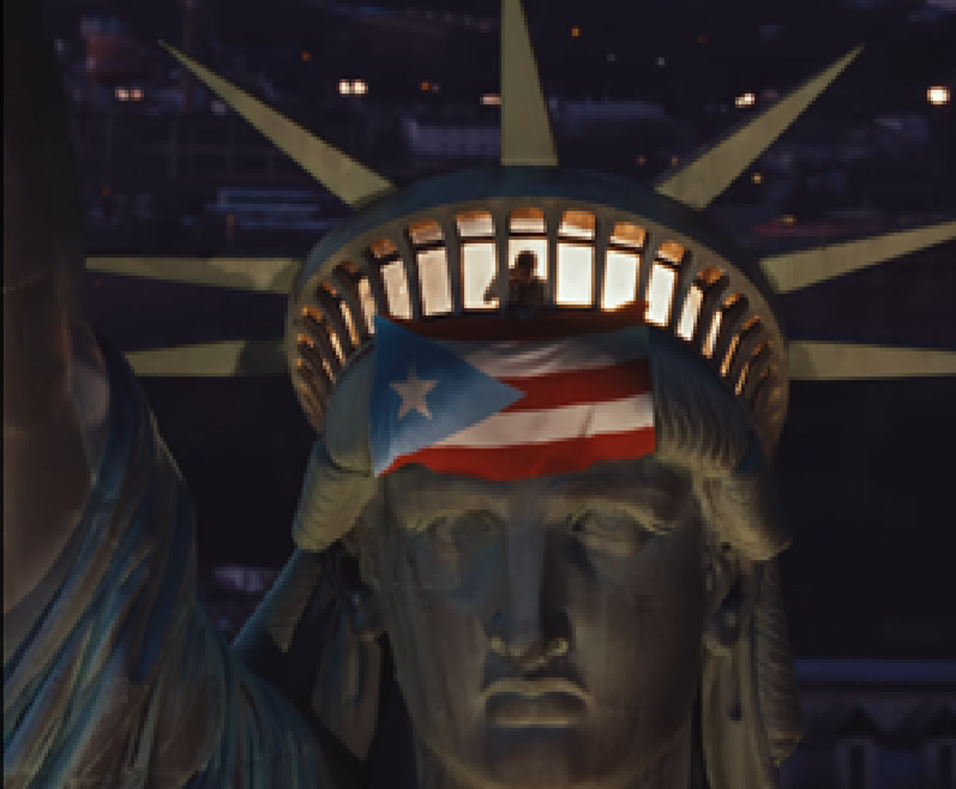 El reguetonero nativo de Puerto Rico afirma en el video que “sin latinos USA no es nada”; y aparece luego la bandera del estado asociado colgada de la cabeza de la Estatua de la Libertad erigida en una isla de la desembocadura del Hudson en 1883, cuando Puerto Rico era aún colonia de España. De hecho, USA liberó a Puerto Rico del imperio español.