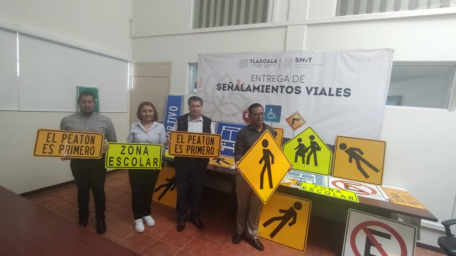 La Secretaría de Movilidad y Transporte (SMyT) entregó 35 señalamientos viales de tipo restrictivo, informativo, preventivo, de destino e información general a las comunidades de El Rosario, municipio de Tlaxco, y Matlalohcan, de Tetla de la Solidaridad, cuya inversión total fue de 133 mil pesos.