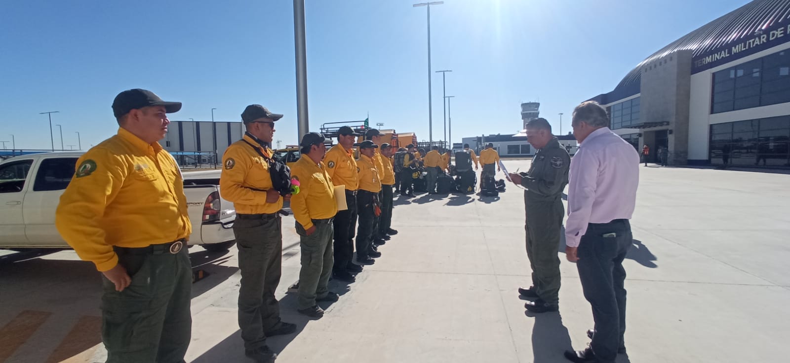 El funcionario estatal transmitió los buenos deseos del gobierno estatal, así como un mensaje de orgullo que representa para Tlaxcala que se presten a participar en este despliegue de combatientes de incendios forestales.