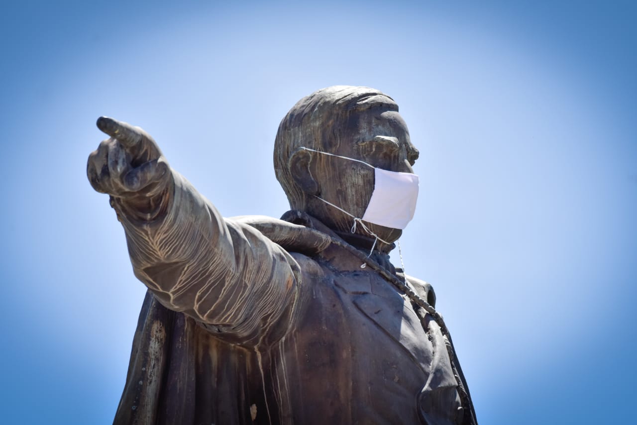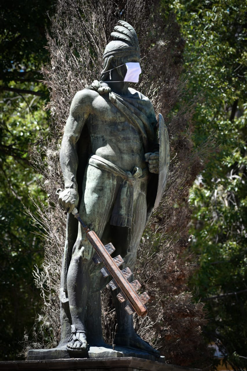 La medida de poner mascarilla a las estatuas fue anticipada en Europa, y hace varias semanas lo mismo se hizo con la emblemática estatua neoyorkina.