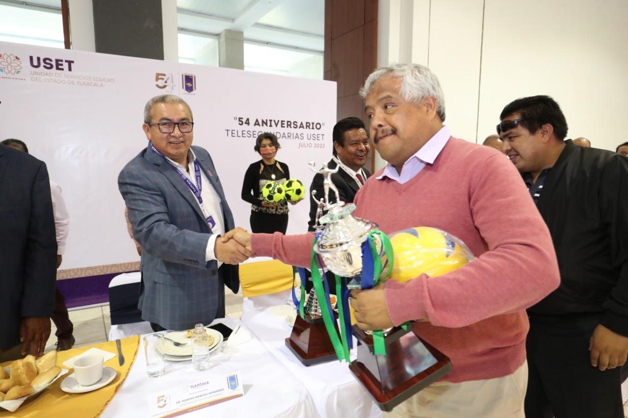 En el marco del 54 aniversario de Telesecundarias, el secretario de Educación y director general de la Unidad de Servicios Educativos de Tlaxcala (USET), Homero Meneses Hernández, en representación de la gobernadora Lorena Cuéllar Cisneros, felicitó a las figuras educativas que forman parte de este subsistema que durante muchos años ha contribuido a la formación de alumnas y alumnos del estado.