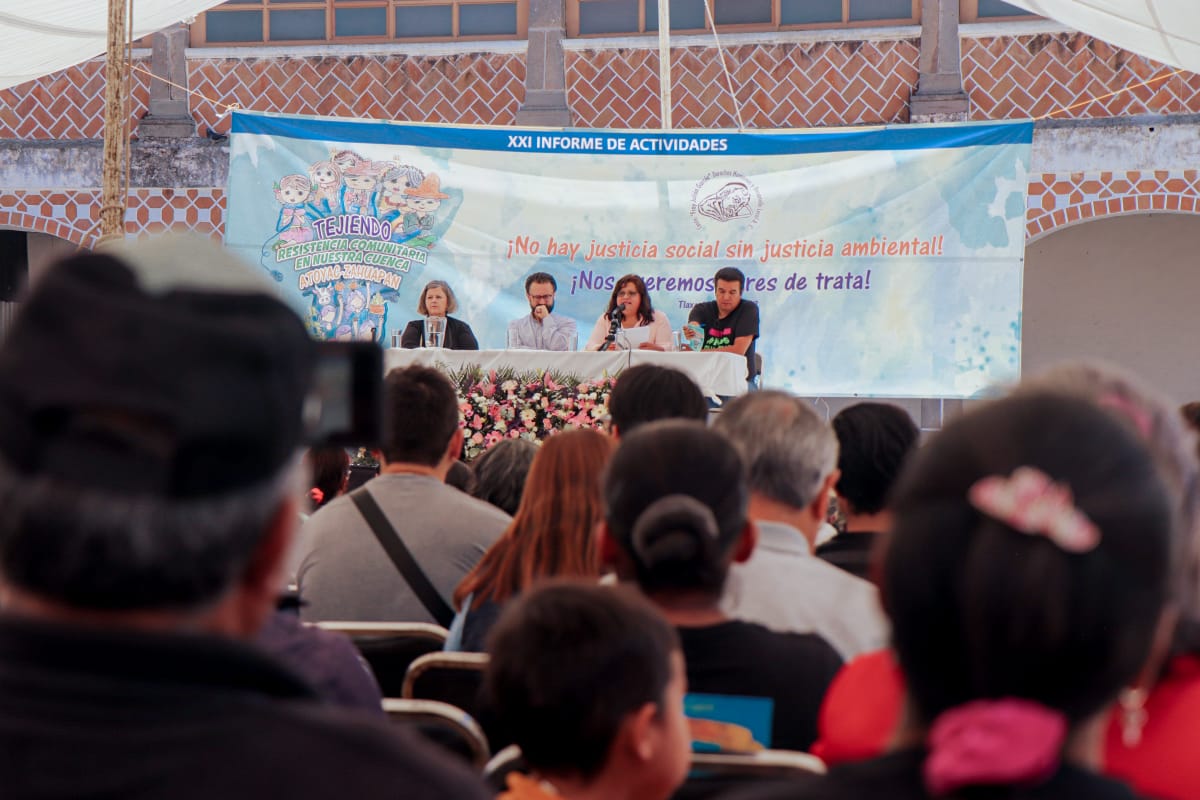 Alejandra Méndez expuso el contexto adverso en el que nos encontramos en la región especialmente en lo relacionado a los múltiples efectos de la contaminación industrial en la salud, el tejido comunitario y la economía, por ejemplo; así como la continuidad de la operación impune de las redes de tratantes de mujeres y niñas con fines de explotación sexual que laceran la vida de las víctimas y de todas las comunidades. Ante ello refirió la gravedad de la minimización de ambas problemáticas por parte del gobierno del estado. Y enunció que, a pesar de ello ha habido ciertos avances como la aprobación del Programa Estatal contra la Trata de Personas con Fines de Explotación Sexual en Niñas y Mujeres que se logró el año anterior, impulsada en gran medida por academia y sociedad civil, quedando aun pendiente su adecuada implementación y de manera urgente la implementación de políticas educativas en aspectos de prevención de la trata. Mientras que en torno a la devastación socioambiental los avances se van dando junto a investigadores/as de diversas Universidades del país, con el respaldo del Consejo Nacional de Ciencia y Tecnología, Conacyt. También destacó algunos eventos puntuales como la reciente presencia en Tlaxcala -en un Foro del Centro Fray Julián- del Relator sobre los derechos al agua y al saneamiento de la Organización de las Naciones Unidas, ONU, Pedro Arrojo Agudo, quien se mostró sumamente preocupado por lo que ocurre en la región; o la participación en una reunión con el Embajador de Estados Unidos en México, Ken Salazar, en torno a la trata de mujeres y niñas en la entidad.