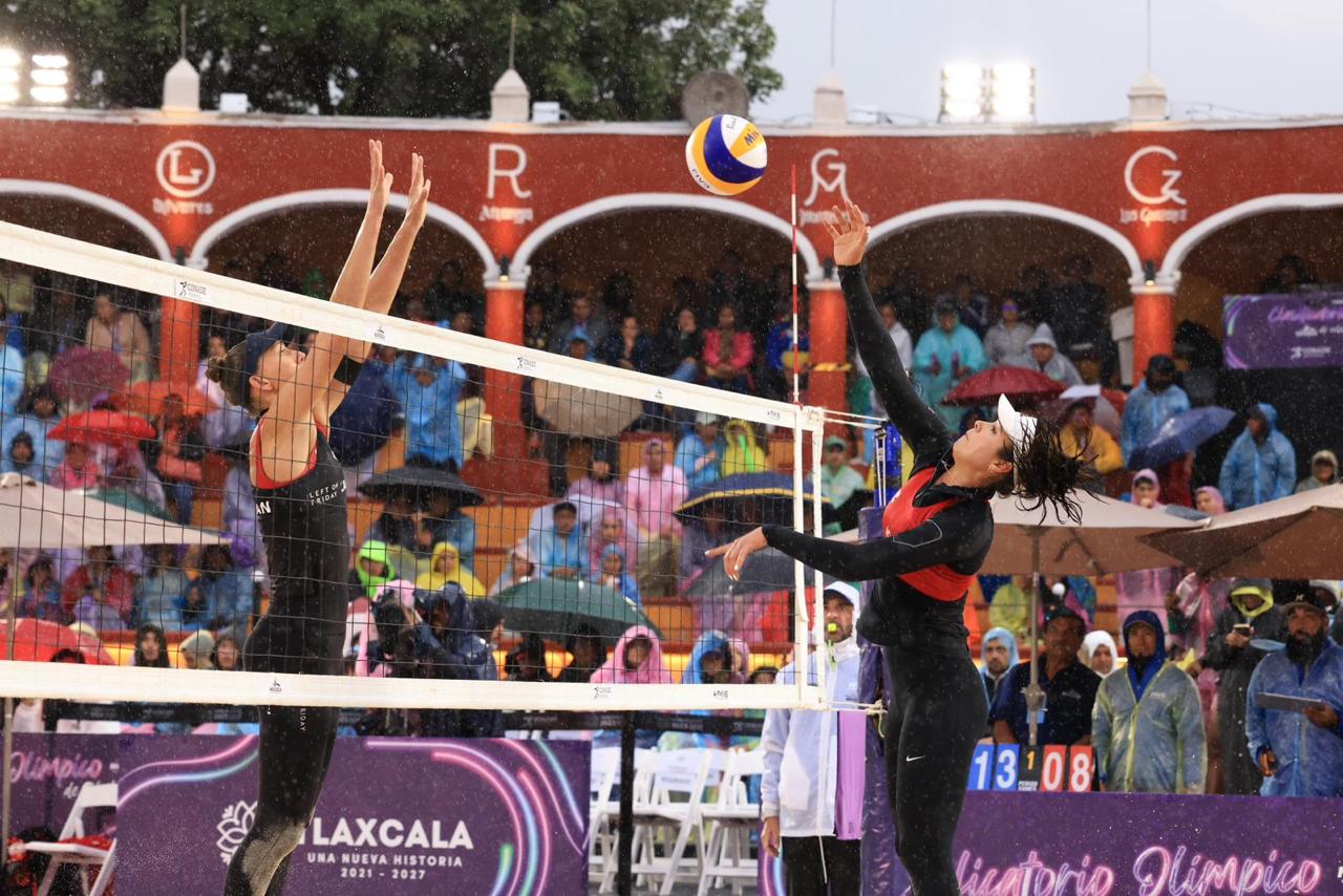 A esta etapa se dieron cita cientos de tlaxcaltecas antes de las 17 horas para vivir esta gran experiencia, la cual inició con los equipos femeniles de México, integrado por Atenas Gutiérrez y Susana Torres contra Heather Bansley y Sophie Bukovec, de Canadá, quienes ganaron 2 a 0 sets y dejó con la medalla de plata a la dupla mexicana.