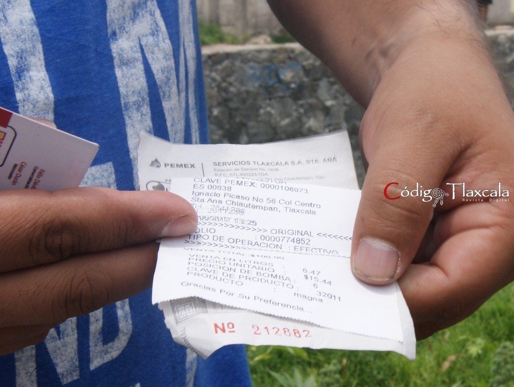 Por separado el conductor de la combi que transita la ruta Ocotlán-Cecyt-Santa Ana, un joven de nombre Alejandro Cuecuecha, precisó que efectivamente se salió de ruta, mas dijo haberlo hecho para cargar gasolina en la estación 0838 de la empresa Servicios Tlaxcala S.A., en el número 56 de la céntrica calle Ignacio Picaso.
