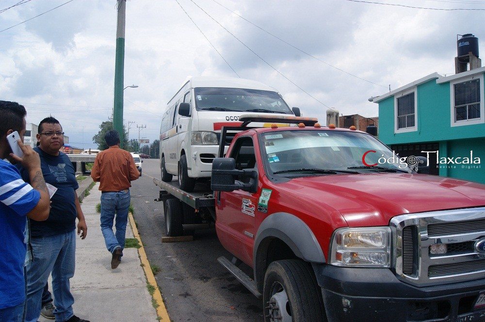 Una combi de transporte colectivo fue detenida al mediodía de este martes por la policía de Santa Ana Chiautempan, Tlaxcala, cuando buscaba acomodo en la base ubicada junto a la Barranca Briones, por haber salido de su ruta para cargar gasolina, lo cual costará al chofer y/o propietario alrededor de 5 mil pesos.