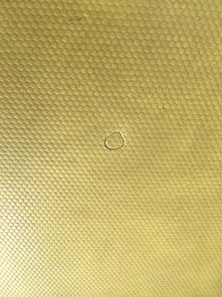 El daño consiste en una marca de tacón que al parecer penetró el tapete de hule.