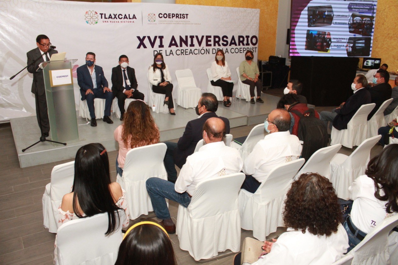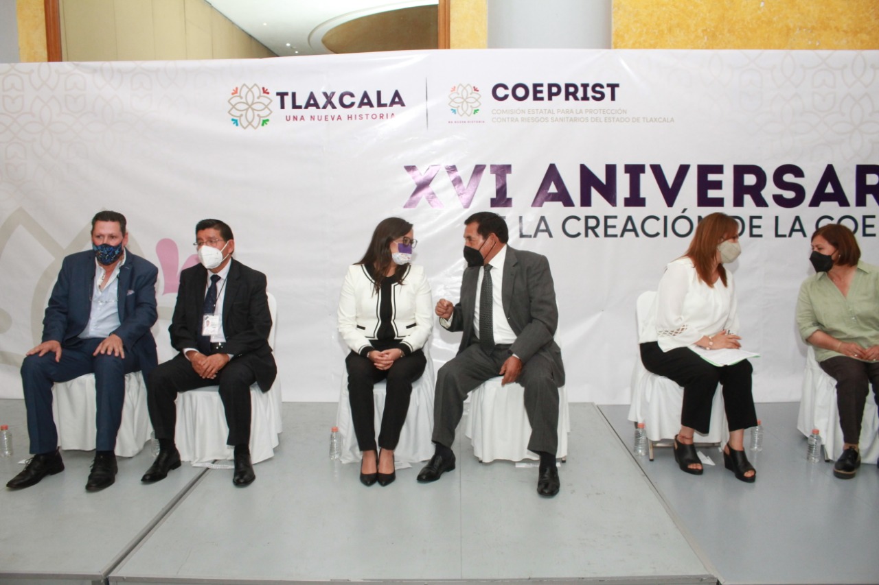 El titular de la Comisión Estatal para la Protección contra Riesgos Sanitarios de Tlaxcala (Coeprist), Francisco Jiménez Campos, encabezó el acto protocolario por el 16 aniversario de esta institución, en compañía de María Fernanda Espinosa de los Monteros Cuéllar, presidenta honorífica del Comité Consultivo de Bienestar y Desarrollo Social del Estado de Tlaxcala, en representación de la gobernadora Lorena Cuéllar Cisneros, acto en el que destacó el papel que desempeña este organismo para mejorar la calidad de vida de la población.