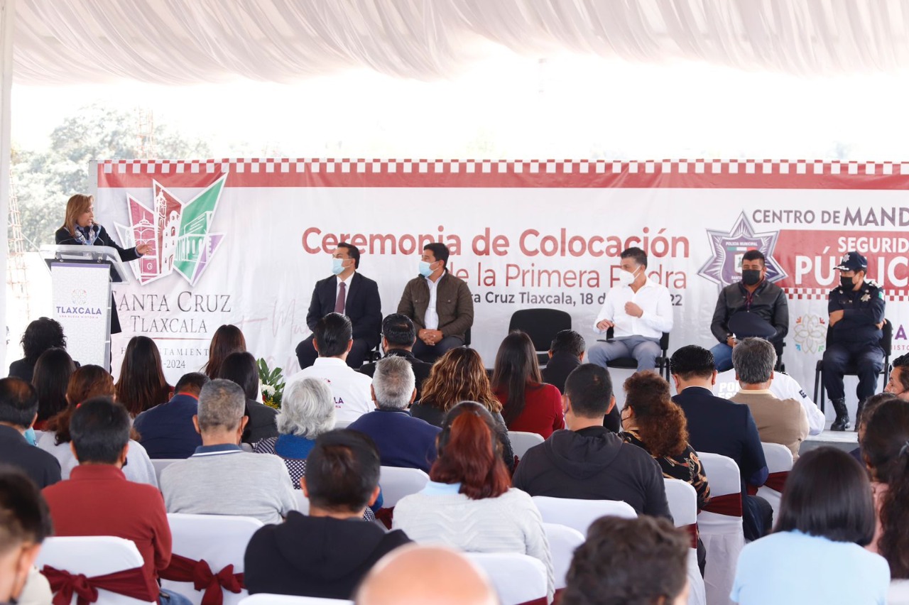 La gobernadora Lorena Cuéllar Cisneros colocó la primera piedra de lo que será el Centro de Mando y Seguridad Pública (C2) de Santa Cruz Tlaxcala, que también albergará las oficinas de Protección Civil, Juzgado Municipal, Ministerio Público Auxiliar y la instancia de la mujer, para brindar una mejor atención a la ciudadanía.