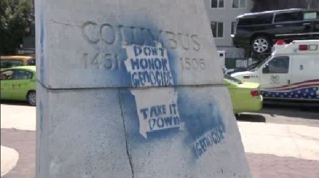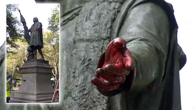 “El odio no será tolerado”, grafitearon y embadurnaron con pintura roja que simboliza sangre la efigie del genovés esculpida en bronce por Jerónimo Sunol por encargo de la Sociedad Genealógica y Biográfica y develada en el Central Park en 1894. “Abajo el genocida”, “No honremos al genocida”, escribieron los decapitadores anti-supremacistas del Colón del Memorial Park de Yonkers, no muy lejos del Bronx. «No honren el genocidio, desmantélenlo”, signaron con pintura azul el monumento Columbus Triangle de Queens dedicado en 1941 que culmina un bronce de Angelo Racioppi. “Racismo, tíralo”, exhortaron días antes contra otro monumento colombino en Baltimore; y el 19 de agosto, militantes de la organización anti-supremacista SURJ se congregaron en Ohio para clamar porque sea retirada asimismo la estatua del ayuntamiento de Columbus.