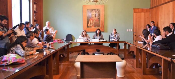 En rueda de prensa, las legisladoras Eréndira Cova Brindis y Guadalupe Sánchez Santiago, integrantes de la Comisión Especial de Diputados encargada del proceso para otorgar el Premio “Miguel N. Lira”, en la celebración del “Día del Periodista”, a celebrarse el uno de julio del año en curso, dieron a conocer la convocatoria.