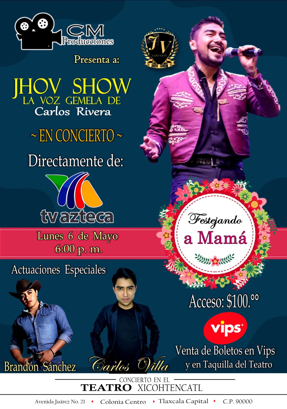 «Festejando a Mamá» se llevará a cabo este lunes 6 de mayo, a partir de las 18:00 horas, en el teatro Xicohténcatl que se encuentra en avenida Juárez, número 21, en la ciudad de Tlaxcala.
