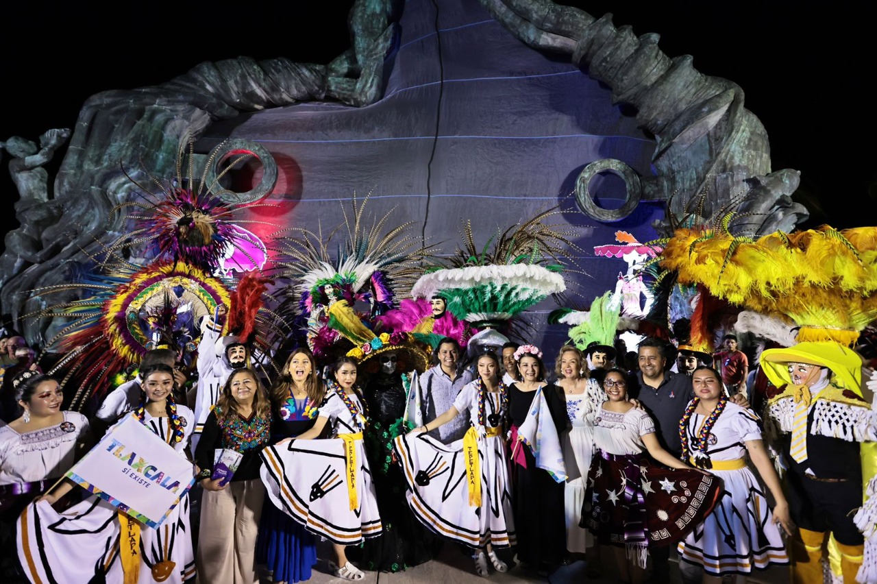 La representación de Tlaxcala que llegó al Festival de Tradiciones de Vida y Muerte, organizado por el Parque Xcaret, en Playa del Carmen, Quintana Roo, fue recibida con júbilo por los miles de visitantes que disfrutaron de los bailes de los huehues.