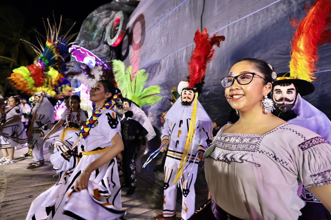 Desde la Quinta Avenida hasta el portal Maya, los tlaxcaltecas mostraron sus vestimentas y danzas que representan la cultura del estado, y están en las actividades del festival que culmina el próximo 2 de noviembre.