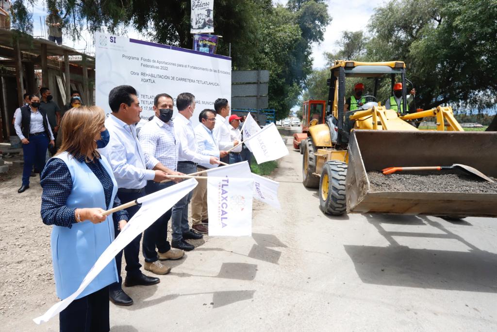 La gobernadora Lorena Cuéllar Cisneros dio el banderazo de inicio a obras de rehabilitación carretera en la comunidad de Santa Cruz Techachalco, municipio de Panotla y en la zona intermunicipal de Tetlatlahuca y Zacatelco, que tendrán una inversión total de 23 millones 059 mil 114 pesos provenientes del Fondo de Aportaciones para el Fortalecimiento de las Entidades Federativas 2022.