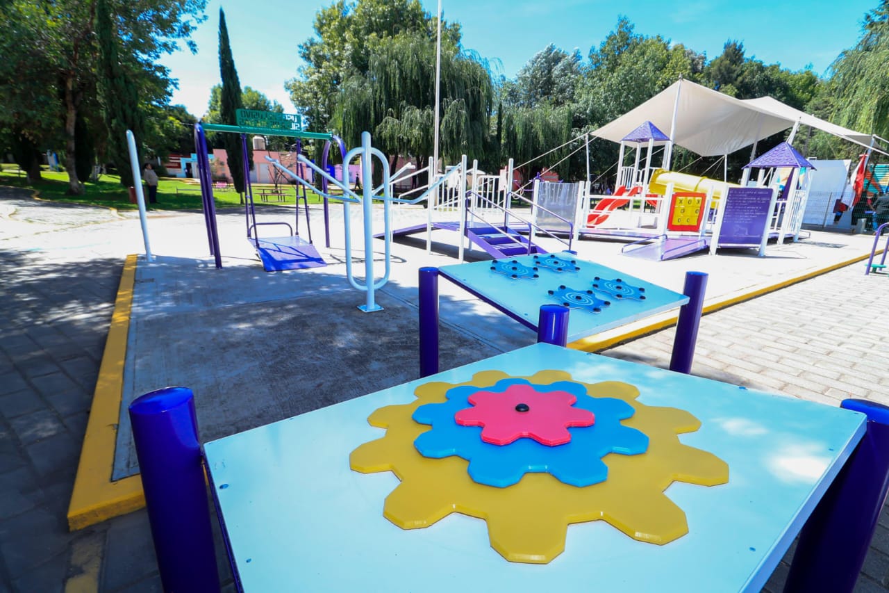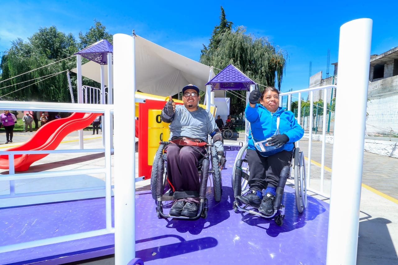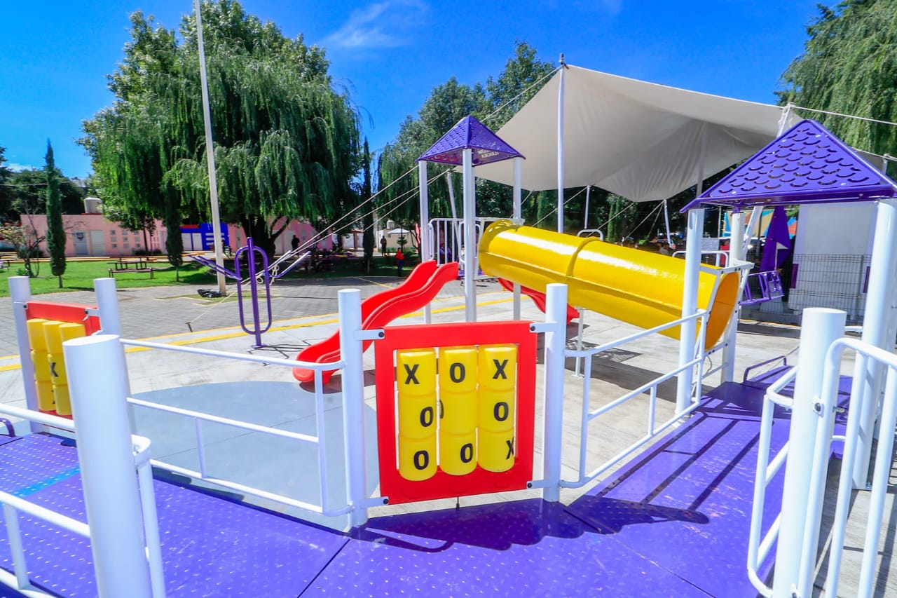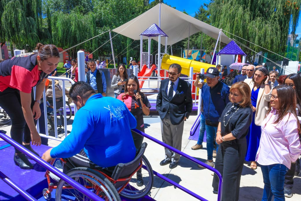 La gobernadora Lorena Cuéllar Cisneros acompañada de la presidenta honorífica del Comité Consultivo de Bienestar y Desarrollo Social del estado, Fernanda Espinosa de los Monteros Cuéllar, inauguró el Parque Inclusivo para el Bienestar en el municipio de Chiautempan, en donde destacó que las acciones a favor de las personas con discapacidad son resultado de años de lucha.