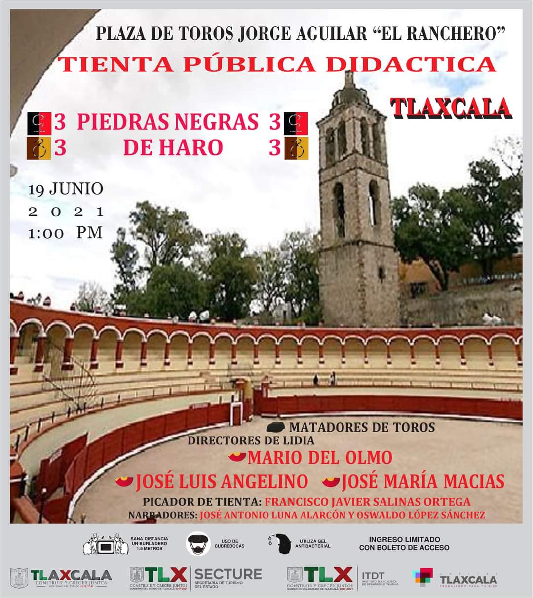 3 vacas de Piedras Negras y 3 de De Haro servirán para que los maestros tlaxcaltecas Mario Del Olmo, José Luis Angelino y José María Macías deleiten a los asistentes con sus depuradas tauromaquias.