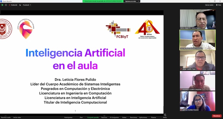 Con una nutrida participación en la última conferencia de la 𝐉𝐨𝐫𝐧𝐚𝐝𝐚 𝐝𝐞 𝐟𝐨𝐫𝐦𝐚𝐜𝐢𝐨́𝐧 𝐲 𝐚𝐜𝐭𝐮𝐚𝐥𝐢𝐳𝐚𝐜𝐢𝐨́𝐧𝐝𝐨𝐜𝐞𝐧𝐭𝐞, 𝐩𝐫𝐢𝐦𝐚𝐯𝐞𝐫𝐚 𝟐𝟎𝟐𝟓 de la Universidad Autónoma de Tlaxcala (UATx), la Doctora Leticia Flores Pulido, Catedrática de esta Casa de Estudios impartió la conferencia «Inteligencia artificial en el aula», en formato virtual, con una exposición que ofreció a los participante orientación para diseñar experiencias de aprendizaje más ricas y significativas para los estudiantes.