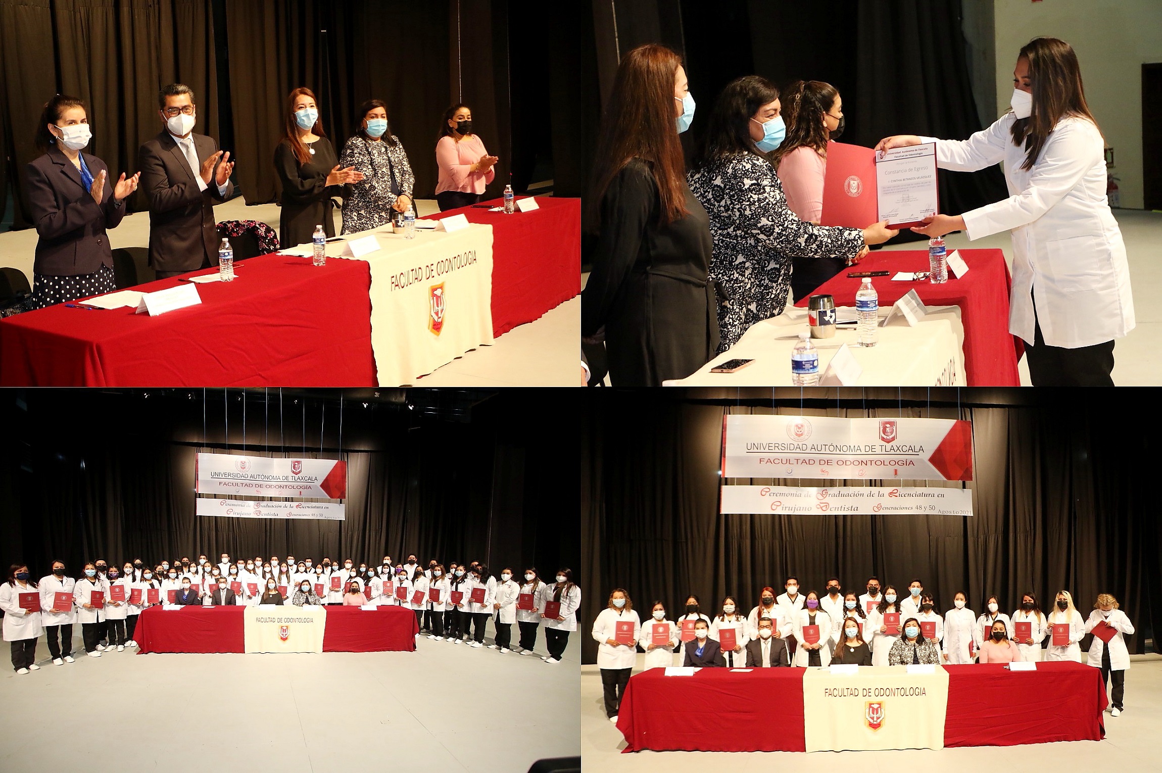 «A lo largo de 45 años, la Facultad de Odontología se ha constituido como la única escuela en su tipo en el estado, de la que han egresado más de 17 mil profesionales que atienden los problemas de salud bucal», aseguró la Dra. Elvia Ortiz, Coordinadora de la División de Ciencias Biológicas, en representación del Dr. Luis González Placencia, Rector de la Universidad Autónoma de Tlaxcala (UATx), al presidir la ceremonia de graduación de 81 estudiantes de la Licenciatura en Cirujano Dentista, de las generaciones 2016-2020 y 2017-2021.