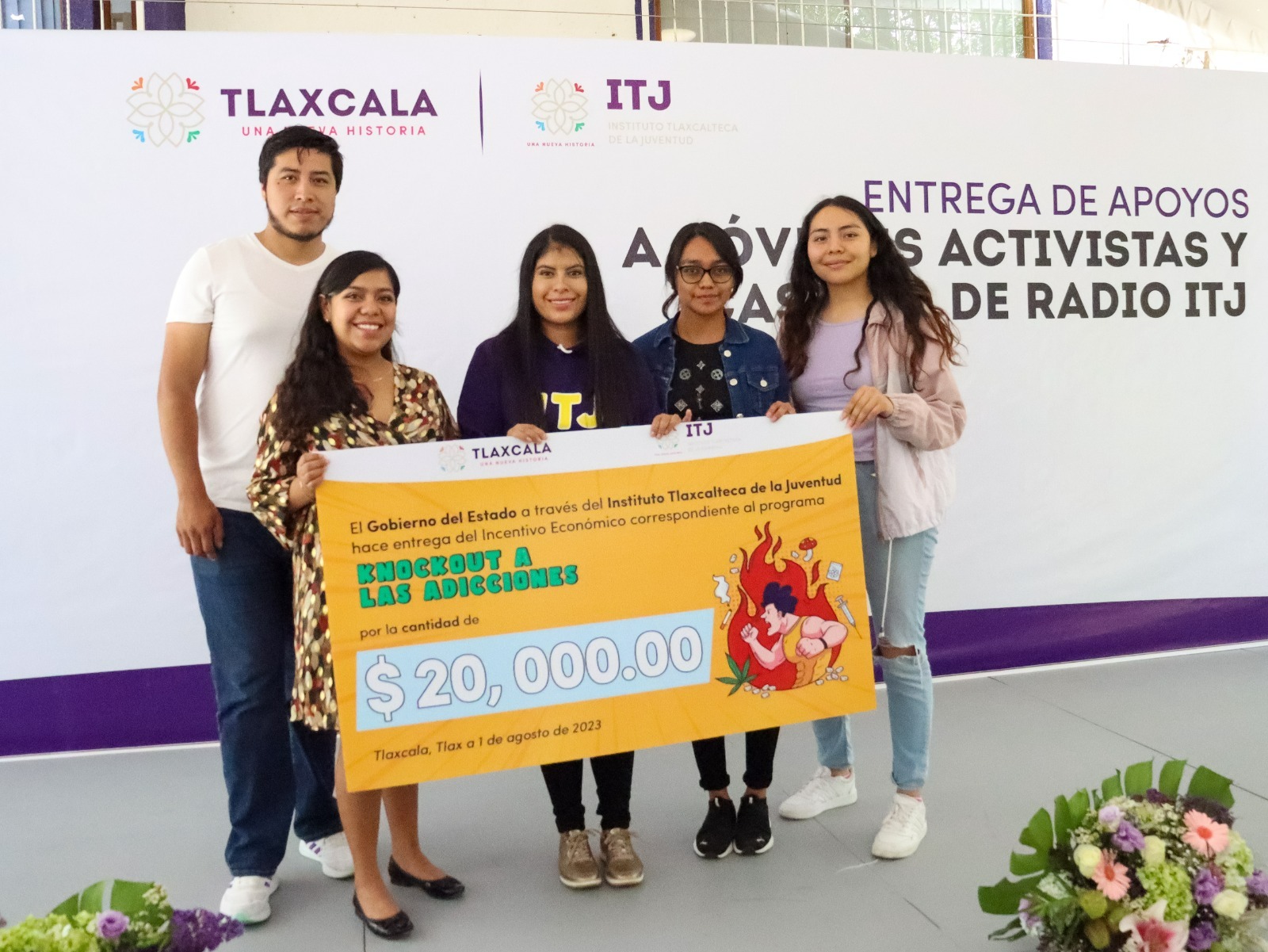 Fueron entregados ocho apoyos económicos a jóvenes con proyectos para prevenir el consumo de adicciones como parte de la campaña “Knockout a las adicciones”, con una inversión de 160 mil pesos.