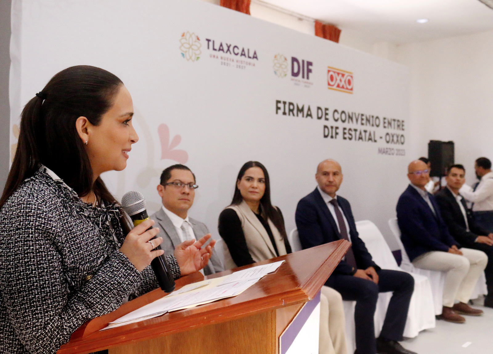 En el evento estuvieron la directora general del Sedif, Flor López Hinojosa; el gerente regional de recursos humanos de Oxxo, Óscar Eduardo Mijangos Herrera; el gerente de la Plaza Tlaxcala de Oxxo, Hugo Nájera Ponce, los secretarios de Desarrollo Económico de Tlaxcala (Sedeco) y del Trabajo y Competitividad (STyC), Javier Marroquín Calderón y Noé Altamirano Islas, respectivamente, así como titulares de los Sistemas Municipales DIF y gerentes de diferentes áreas de la empresa.
