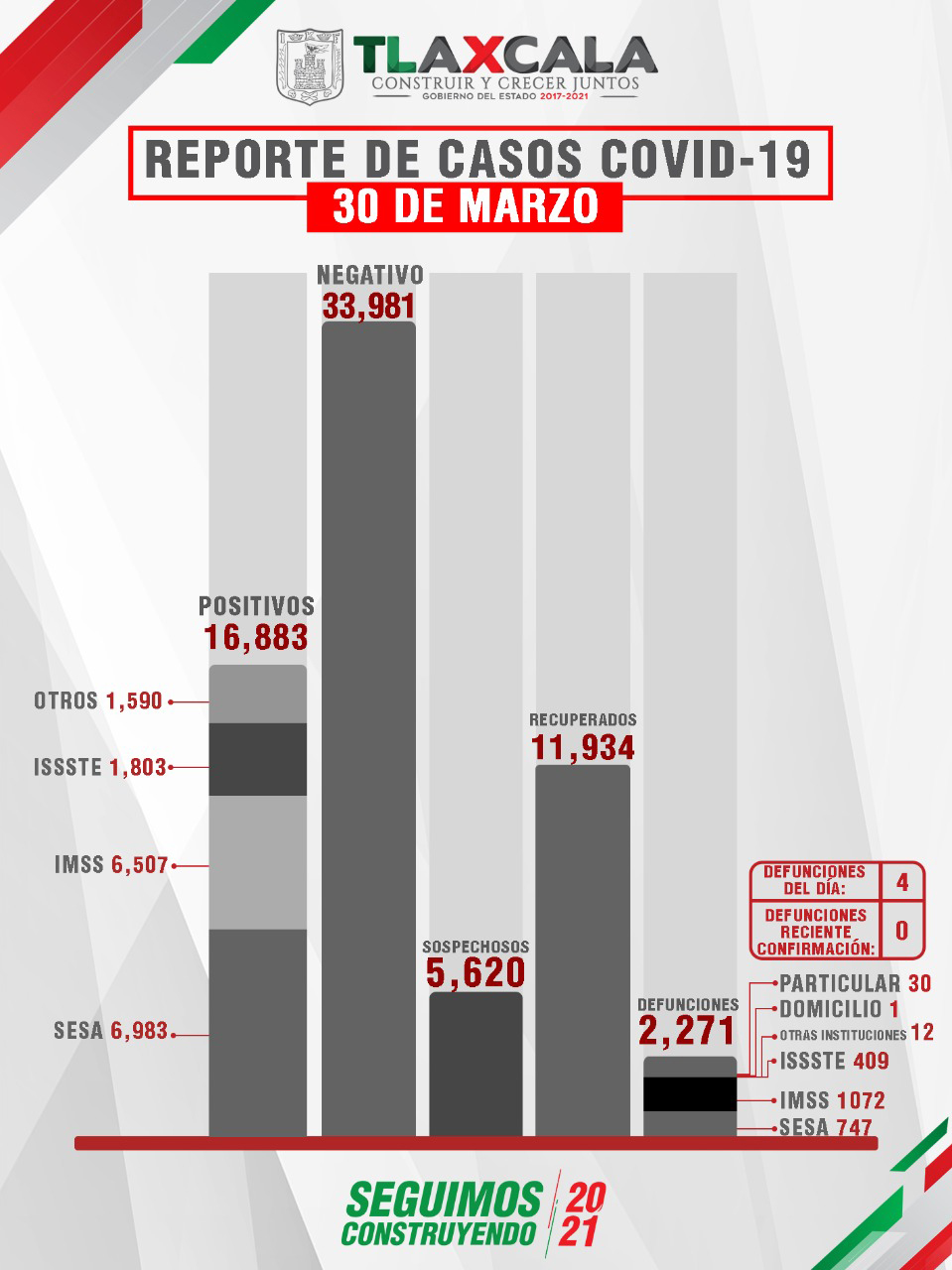 De esta manera, el estado registra 11 mil 934 personas recuperadas, 16 mil 883 casos positivos y dos mil 271 fallecimientos.
