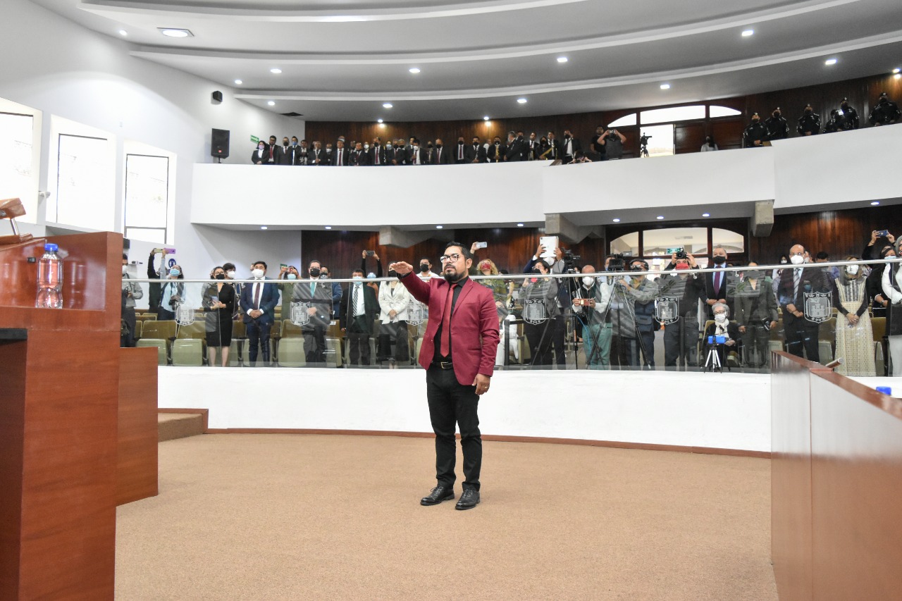 En sesión extraordinaria pública, el profesional en derecho rindió protesta ante el Pleno de esta Soberanía, tras la votación del dictamen con proyecto de decreto emitido por la Comisión de Puntos Constitucionales, Gobernación y Justicia y Asuntos Políticos.
