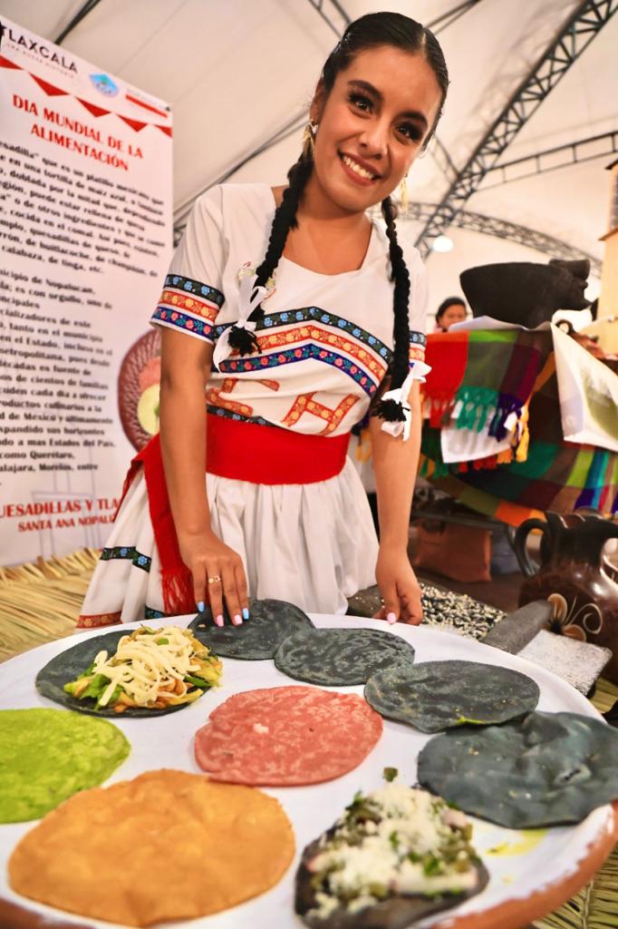 La gobernadora Lorena Cuéllar Cisneros asistió como invitada especial a la Muestra Gastronómica “No dejar a nadie atrás”, organizada por el Sistema Estatal para el Desarrollo Integral de la Familia (Sedif), en el marco del Día Mundial de la Alimentación para promover la buena nutrición, la cocina tradicional tlaxcalteca y el acceso a alimentos saludables.