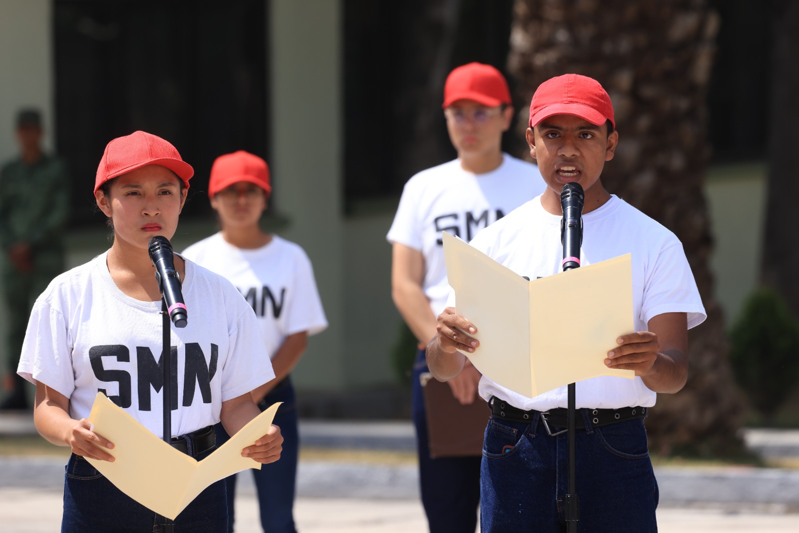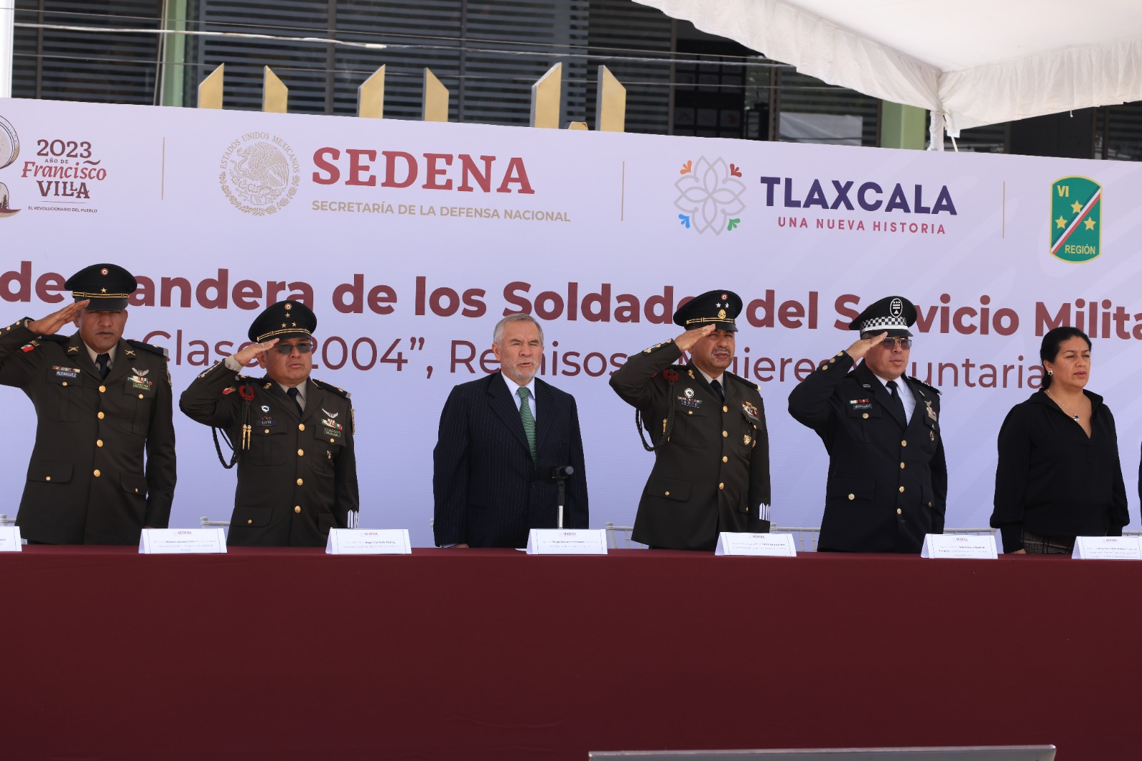 En representación de la titular del Ejecutivo local, Lorena Cuéllar Cisneros, el secretario de Gobierno (Segob), Sergio González Hernández, encabezó la ceremonia de toma de protesta de Bandera a los soldados del Servicio Militar Nacional (SMN), clase 2004, remisos y mujeres voluntarias.